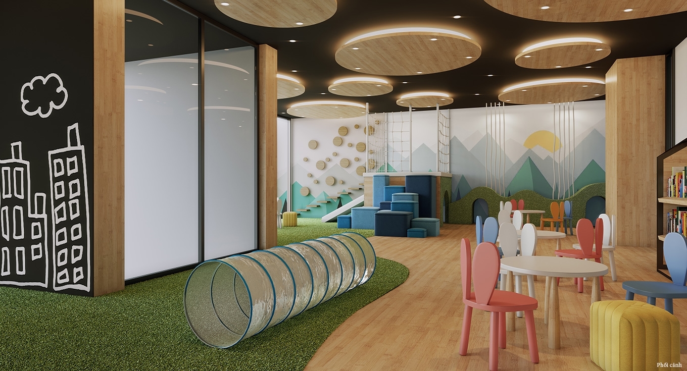Các cư dân nhí sẽ được thỏa sức vui chơi và sáng tạo tại các khu vực dành riêng cho mình như: khu công viên kính vạn hoa, khu vui chơi cát, khu nhà trên cây, khu vui chơi trong nhà,… Với những trò chơi vận động liên hoàn sẽ kích thích được tối đa sức sáng tạo, tuổi thơi của các cư dân nhí sẽ thêm phần phong phú, giúp con trẻ phát triển toàn diện nhất về cả thể chất và trí tuệ.
